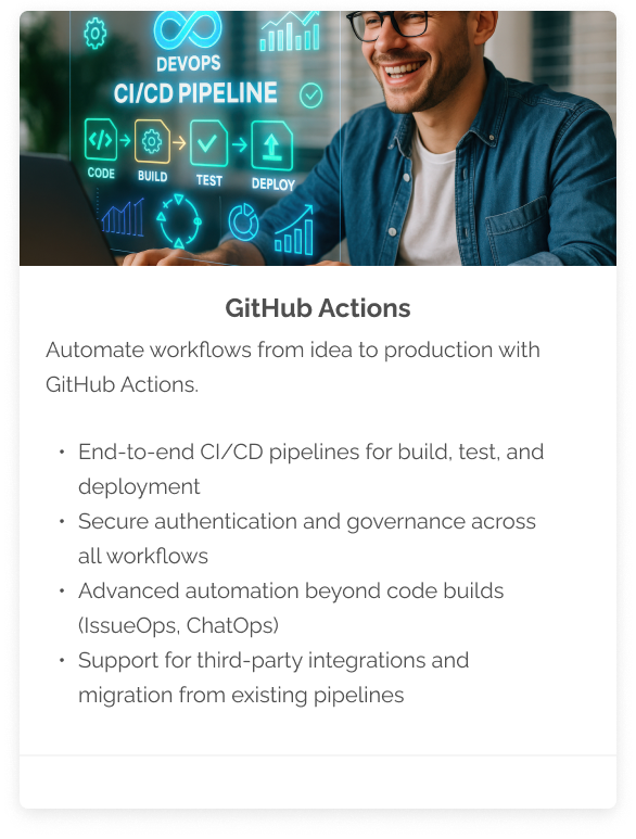 As a GitHub Advanced Partner, the CEI team has experience across a wide array of DevOps tools and client experience that spans nearly every major industry, allowing us to deliver unique solutions customized for your success. By hiring talented team members, using the correct tools, and implementing the right processes, you will experience efficiencies through automation, increased business value, and a culture of empowerment, quality, and innovation.